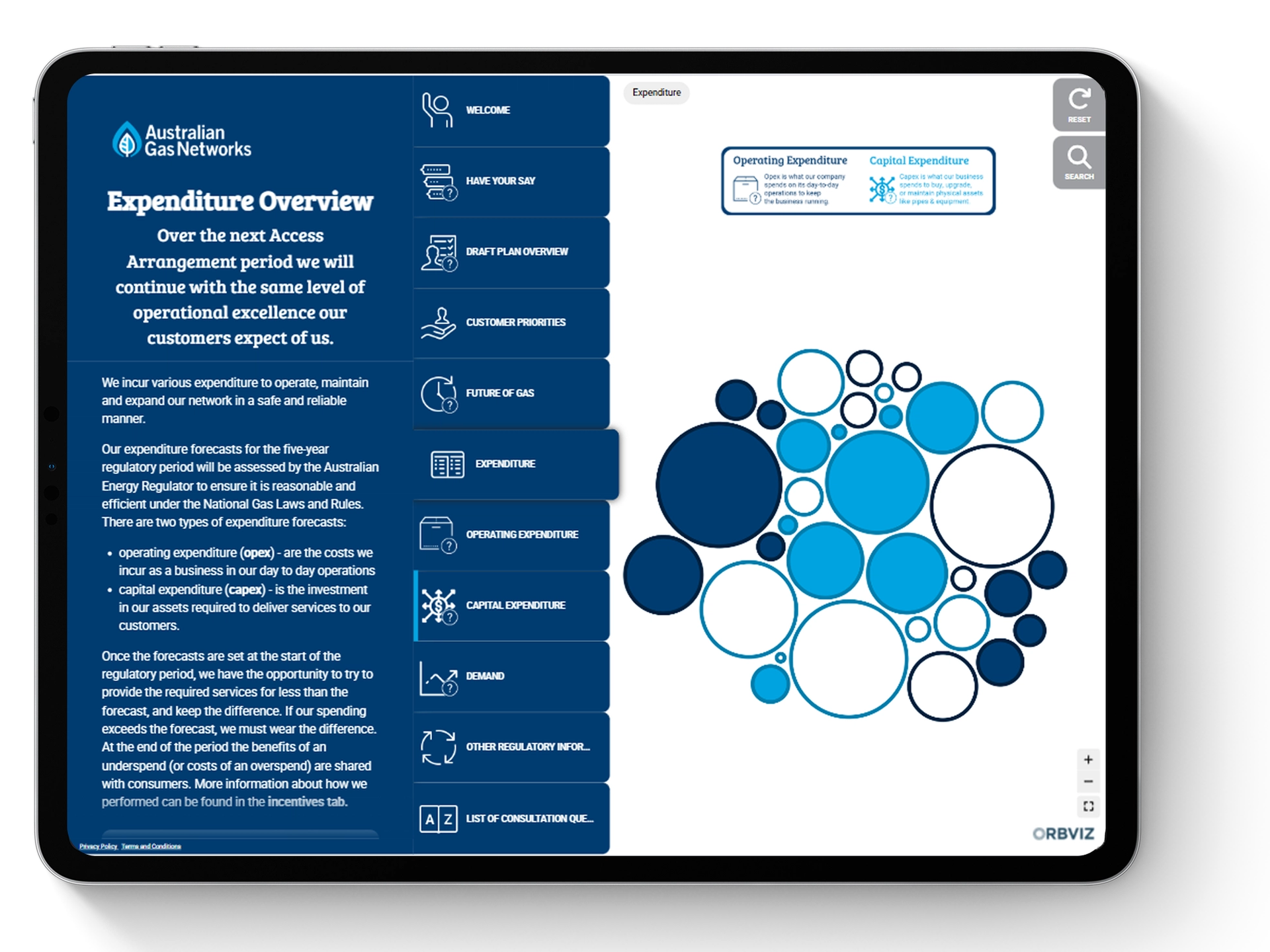 Consolidate your complex data and reports into an easy-to-navigate and explore digital experience for your stakeholders. Engage and collect feedback to inform decision making.