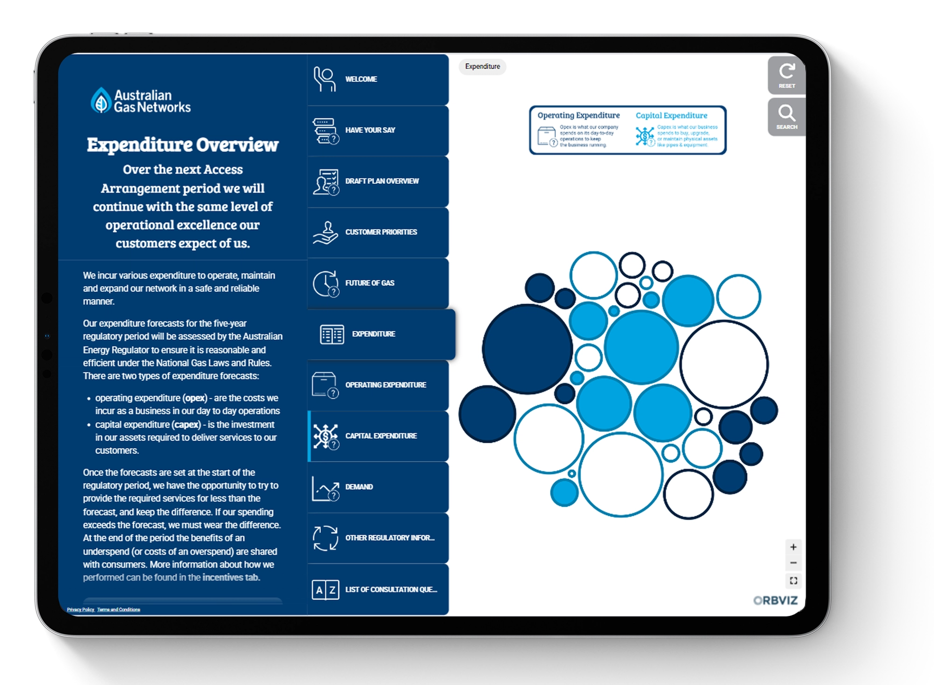 Consolidate your complex data and reports into an easy-to-navigate and explore digital experience for your stakeholders. Engage and collect feedback to inform decision making.